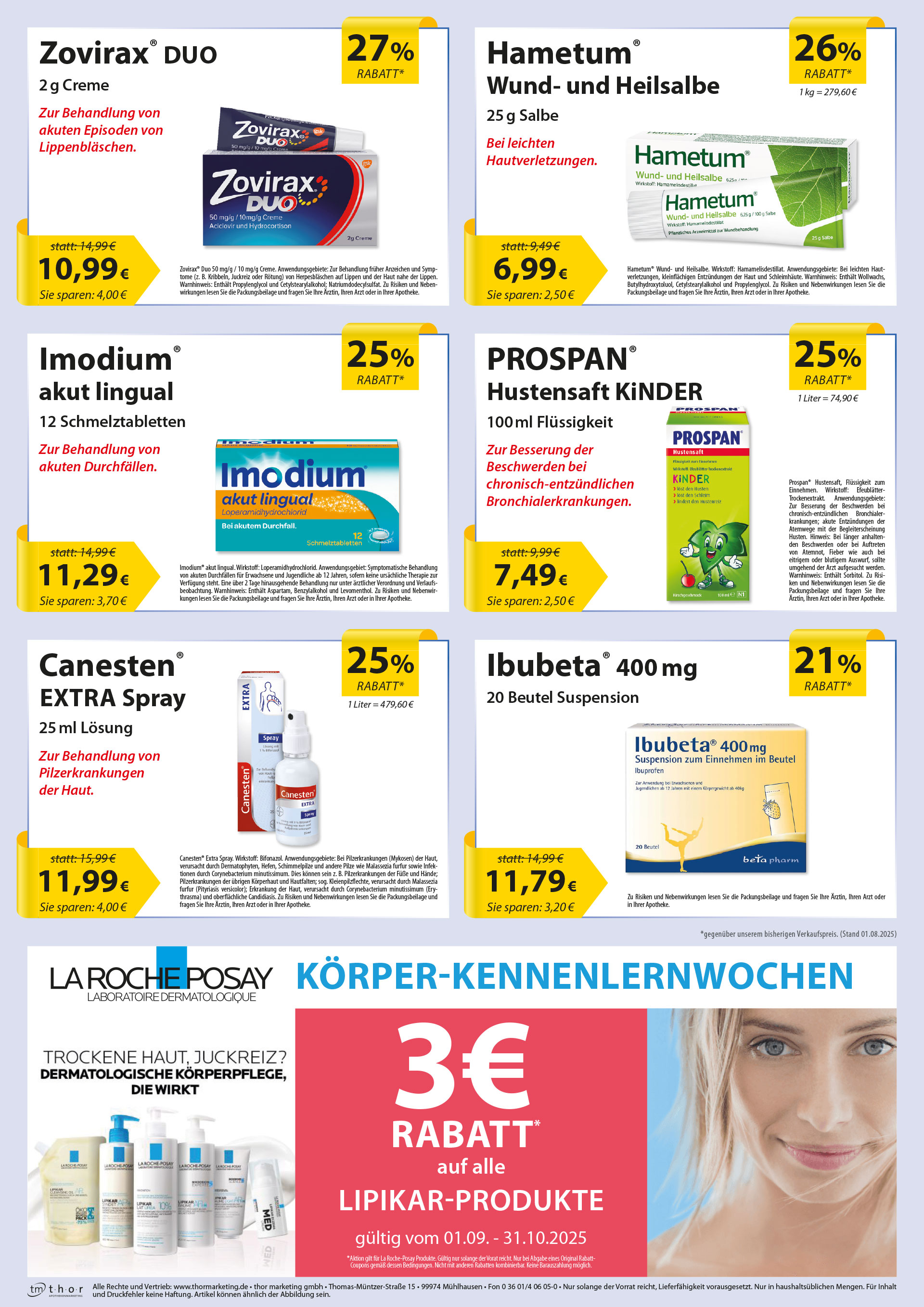 Mit uns können Sie richtig sparen! In der Markt Apotheke in der Markthalle haben wir jeden Monat neue Angebote für Sie. Ein besonderer Vorteil für Sie: Auch für den Kauf von Produkten aus unserem Angebots-Flyer erhalten Sie wertvolle Treuepunkte. Der aktuelle Flyer liegt immer für Sie in der Markt Apotheke in der Markthalle und der Albtor Apotheke griffbereit aus.